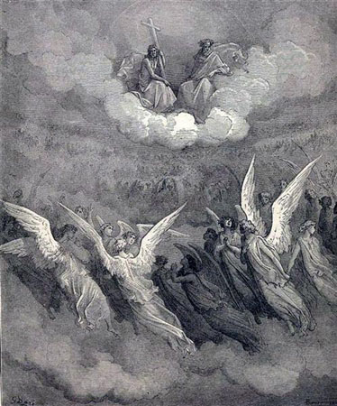 In some Jewish stories of the era we are presented with a seven layer heaven, in others a five layer heaven, and by Paul and other Christians we hear of a three layer heaven. This diagram, from a Christian fundamentalist, probably closely represents the view of heaven that Paul literally believed in. As far as Paul was concerned the clouds were the midway point between the heavens and earth. As far as Paul was concerned these heavens were populated by many different beings, including angels and demons, and people could literally travel to these heavens and people on earth could literally have visions of events taking place in these heavens.
